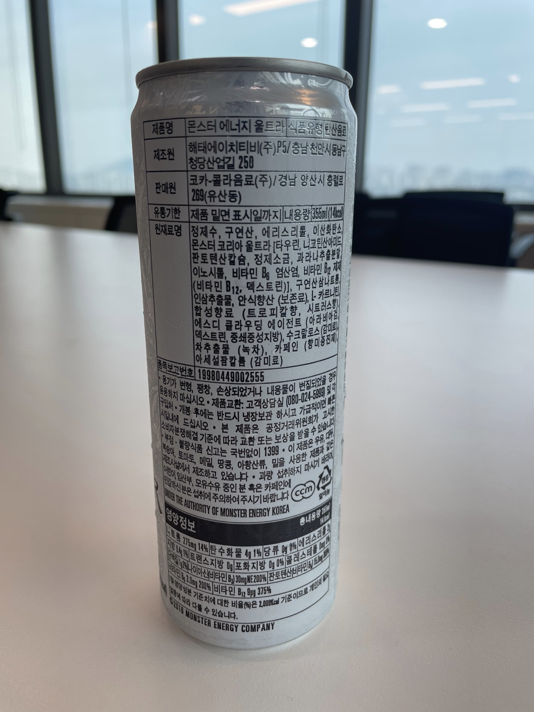 음료수는 거의다 당이 포함되어 있는데 몬스터는 거의 없습니다.