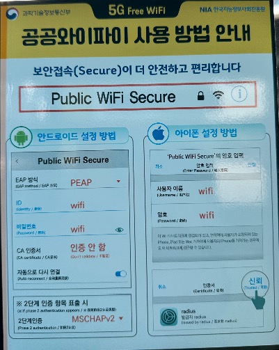 Public Wifi Secure 선택 후 접속하세요.
