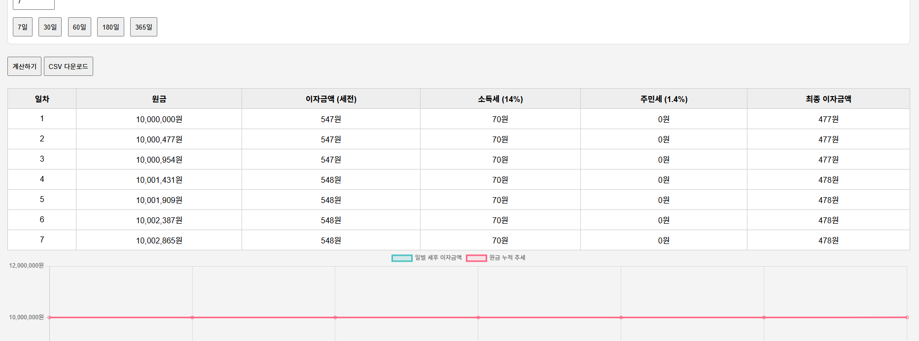 이자 계산은 세금 변동 및 반올림 등 오차가 발생 할 수 있습니다. 참고 용도로만 사용해주세요.